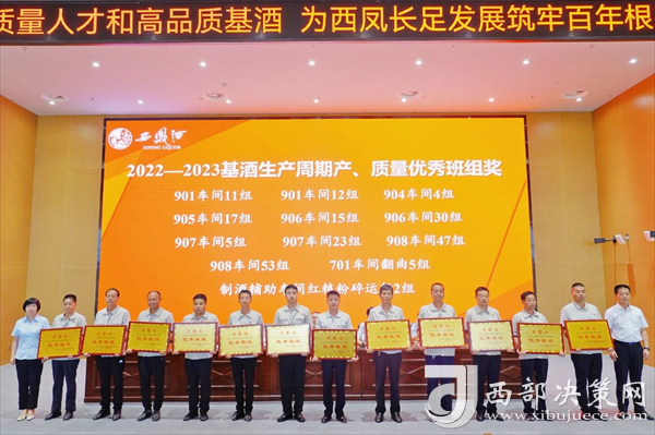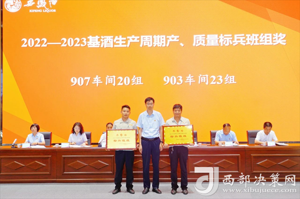 會(huì)上,張周虎宣讀了《關(guān)于對(duì)2022—2023基酒生產(chǎn)周期產(chǎn)質(zhì)量勞動(dòng)競(jìng)賽獲獎(jiǎng)車(chē)間、班組進(jìn)行表彰獎(jiǎng)勵(lì)的決定》。與會(huì)領(lǐng)導(dǎo)為受表彰的獲獎(jiǎng)車(chē)間、班組頒發(fā)獎(jiǎng)牌。