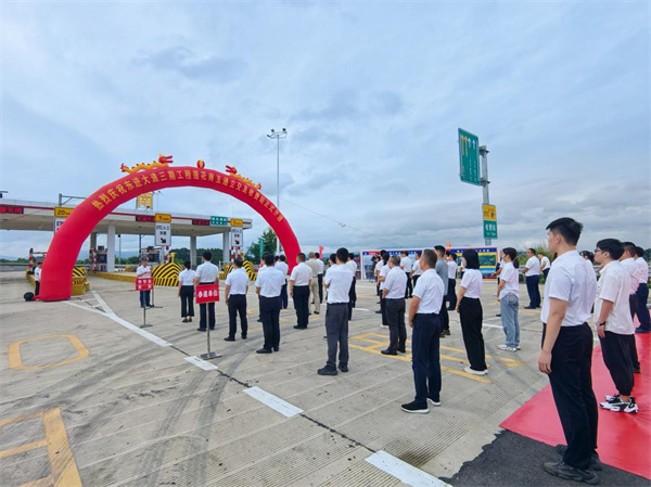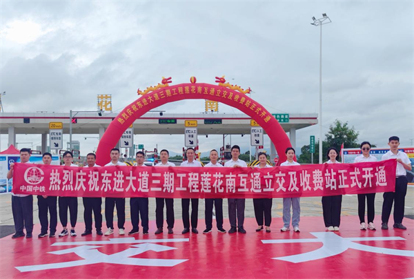 10月8日,由中鐵一局一公司承建的肇慶東進大道三期工程蓮花南互通立交及收費站正式開通運營。肇慶市副市長謝桂坤,中鐵一局副總經(jīng)理郭秀春,中鐵一局一公司總經(jīng)理韓勝等相關領導以及肇慶市政府有關部門、市交通集團、設計、監(jiān)理和項目參建人員現(xiàn)場共同見證蓮花南互通立交及收費站開通。