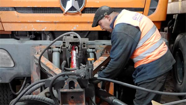 同時(shí),車隊(duì)維修班組也在加緊對(duì)所有車輛進(jìn)行全面健康“大體檢”。車庫(kù)內(nèi),維護(hù)人員正在對(duì)設(shè)備車輛的傳動(dòng)軸、液壓、制動(dòng)、電路等進(jìn)行重點(diǎn)保養(yǎng)、檢修,針對(duì)老化損壞的線路和設(shè)備零部件進(jìn)行維修更換。