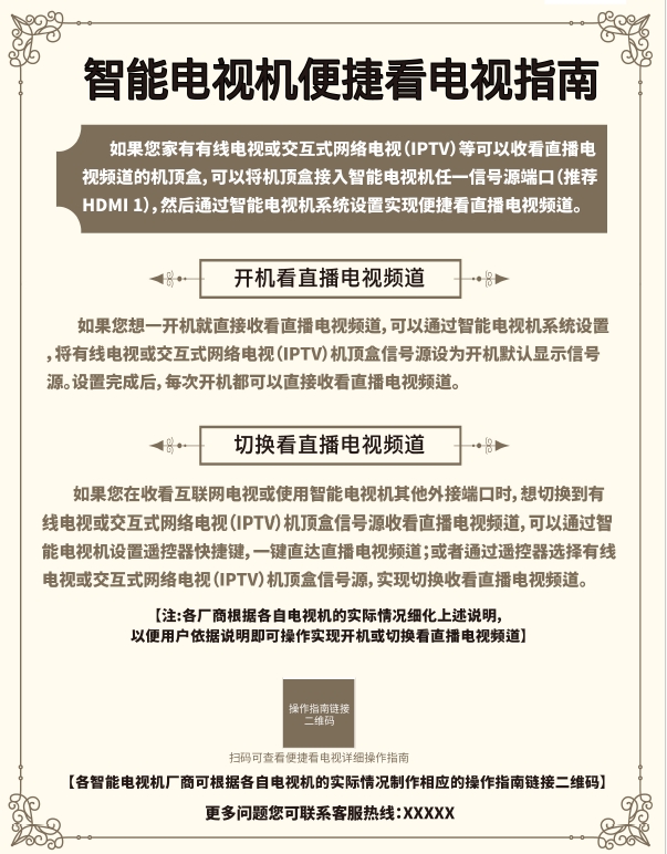 記者11月10日從國(guó)家廣播電視總局獲悉,根據(jù)治理電視“套娃”收費(fèi)和操作復(fù)雜工作部署要求,國(guó)家廣播電視總局、工業(yè)和信息化部、國(guó)家市場(chǎng)監(jiān)督管理總局、中國(guó)消費(fèi)者協(xié)會(huì)決定開展電視收看“明白卡”提示工作。自2023年11月起,各電視機(jī)生產(chǎn)廠商要將制作完成的《電視收看“明白卡”》裝入電視機(jī)包裝箱內(nèi)的說明材料中,同時(shí)在電商銷售頁面、線下實(shí)體銷售和廠商入戶安裝電視機(jī)過程中,將“明白卡”內(nèi)容向用戶明確展示,并告知用戶只有開通有線電視或IPTV方可收看電視直播頻道節(jié)目。(記者王鵬)