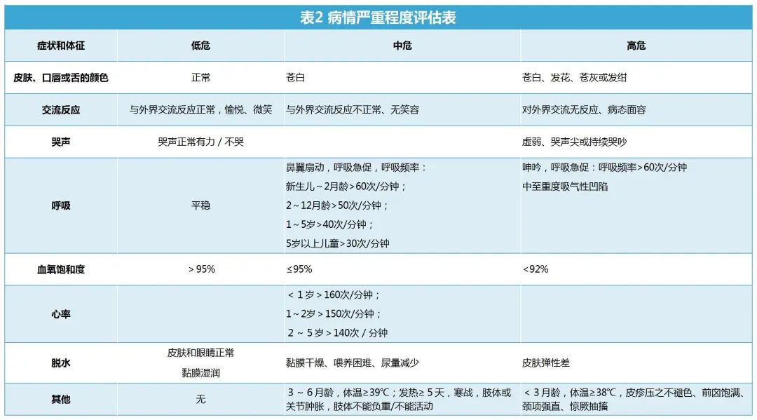 注:存在高危中任意一項表現(xiàn),即判定為高危;存在中危中任意一項但無高危表現(xiàn),即判定為中危。低危的發(fā)熱兒童可在家中護(hù)理;中危的發(fā)熱兒童,應(yīng)盡快就診;高危的發(fā)熱兒童,應(yīng)立即就診。