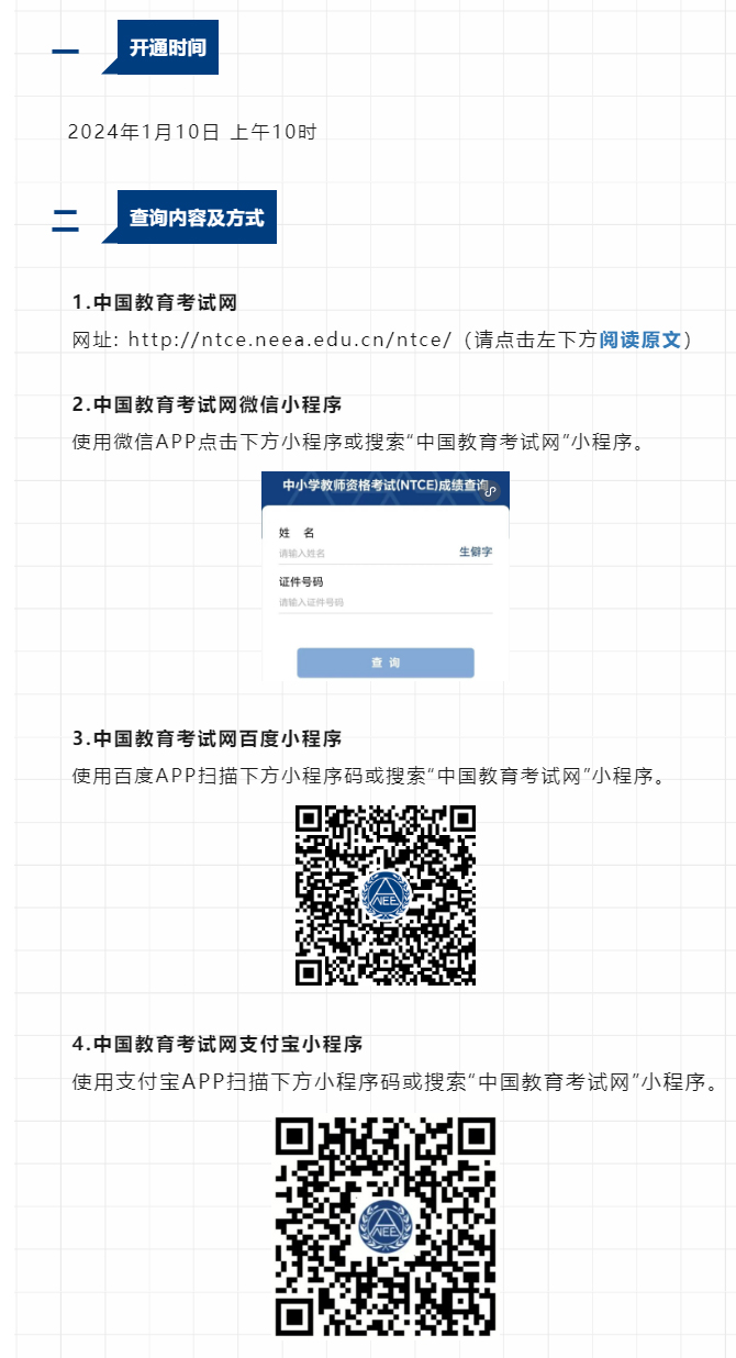 2023年下半年中小學教師資格考試(面試)結(jié)果、考試合格證明于2024年1月10日開通查詢,現(xiàn)將有關事宜通知如下: