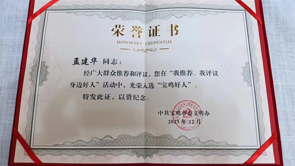 “敬業(yè)奉獻”寶雞好人——孟建華