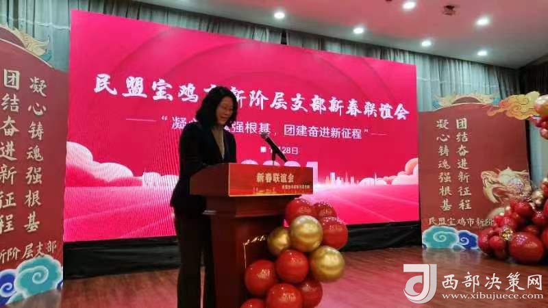 西部決策網(wǎng)訊  (記者帥華鋒 通訊員 張妍)1月28日,民盟寶雞市新階層支部舉行2023年工作總結(jié)會暨新春聯(lián)誼會。民盟寶雞市委會副主委兼秘書長董薇,常委組織部長白宗武,民盟寶雞市委會常委眉縣支部主委郭杜鵑,民盟寶雞市委會常委企業(yè)支部主委朱子銳,民盟寶雞市委會委員金臺總支主委姬雪婷,民盟寶雞市委會委員渭濱總支主委李紅梅,民盟寶雞市委會委員行政一支部主委馬妮娜以及民盟寶雞市委員會委員新階層支部主委郭泳宏出席活動。共計70余人參會。