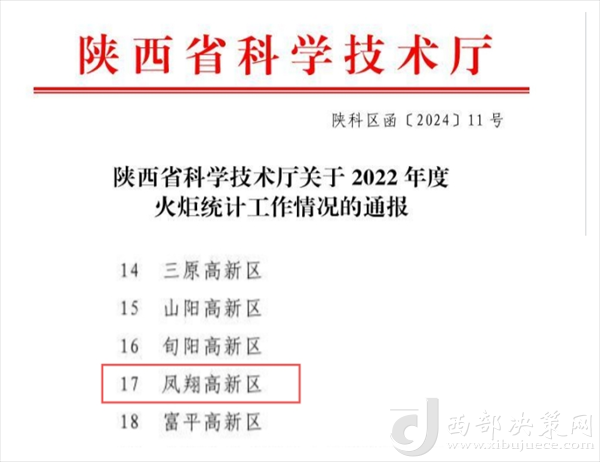 西部決策網(wǎng)訊 近日,陜西省科技廳下發(fā)了2022年度火炬統(tǒng)計(jì)工作情況的《通報(bào)》,鳳翔高新區(qū)在火炬統(tǒng)計(jì)工作中完成任務(wù)及時(shí)、填報(bào)審核嚴(yán)格、工作成效突出,被省科技廳通報(bào)表揚(yáng),這已經(jīng)是鳳翔高新區(qū)連續(xù)四年獲通報(bào)表揚(yáng)。