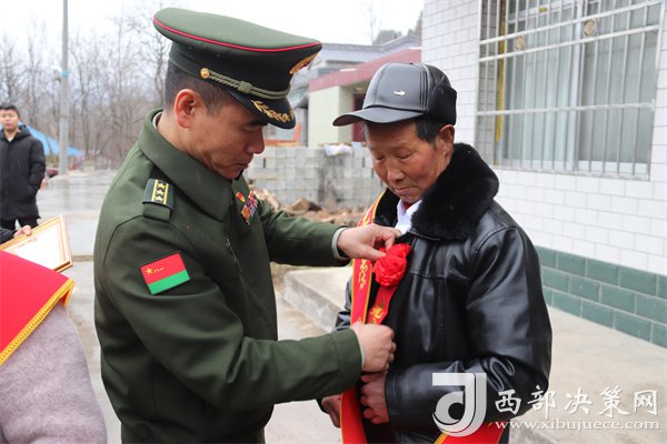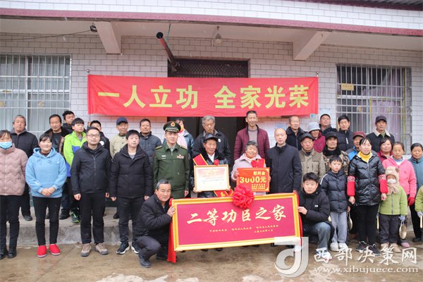 西部決策網(wǎng)訊 春節(jié)將至萬家慶,鑼鼓喧天送喜來。2月2日,略陽縣馬蹄灣鎮(zhèn)付家山村鑼鼓聲、鞭炮聲,熱鬧非凡。縣人武部、縣退役軍人事務(wù)局,鎮(zhèn)、村三級(jí)領(lǐng)導(dǎo)為榮立二等功的付建強(qiáng)家屬送來立功喜報(bào)和功臣牌匾。