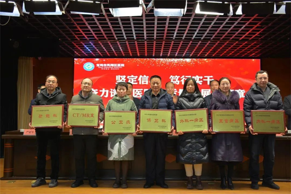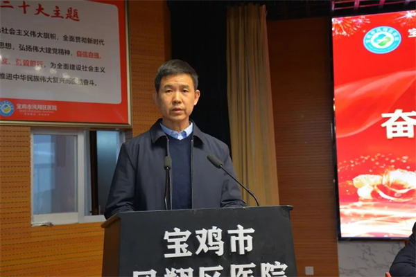鳳翔區(qū)衛(wèi)健局黨組書記、局長張建峰對2023年醫(yī)院的學(xué)科建設(shè)、三級醫(yī)院創(chuàng)建、醫(yī)療服務(wù)能力提升、醫(yī)院綜合管理、重點項目建設(shè)等工作成績給予充分肯定和高度贊揚,并對醫(yī)院下一步發(fā)展提出了指導(dǎo)性意見。他指出,區(qū)醫(yī)院要緊扣中心工作,推動醫(yī)院各項事業(yè)高質(zhì)量發(fā)展,要抓好項目建設(shè),在服務(wù)能力上實現(xiàn)新突破,要強(qiáng)化人才隊伍建設(shè),激發(fā)職工干事創(chuàng)業(yè)激情,要鼓勵資源下沉,助推緊密型醫(yī)共體建設(shè)。希望鳳翔區(qū)醫(yī)院全體干部職工同心同德,砥礪奮進(jìn),為推動鳳翔衛(wèi)生健康事業(yè)高質(zhì)量發(fā)展再做貢獻(xiàn)、再立新功。