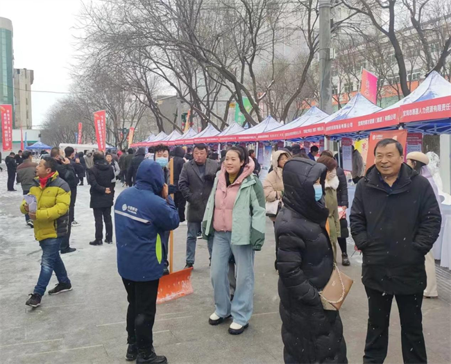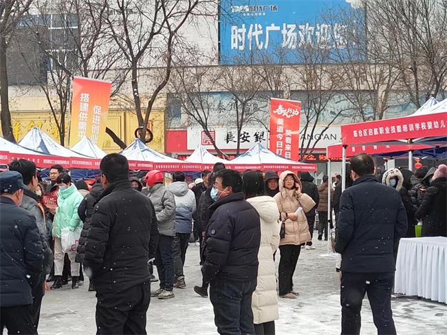 “你好,需要找工作嗎?”“可以了解一下我們企業(yè)”盡管大雪紛飛,天氣寒冷,但求職者們的熱情絲毫不減。求職者和招聘企業(yè)之間展開充分交流,招工、求職“供需兩旺”。不少求職者穿梭于各企業(yè)招聘展臺前,詢問工資待遇,填寫求職信息等。企業(yè)招聘人員熱情地向每一位求職者介紹企業(yè)崗位需求情況,講解薪資待遇、相關(guān)補貼政策等,現(xiàn)場人頭攢動,熱鬧非凡。