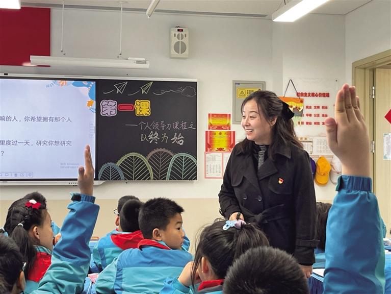 “開學(xué)前,曲江二小教育集團(tuán)總校長(zhǎng)閻利娟就確定了本學(xué)期‘開學(xué)第一課’的主題——個(gè)人領(lǐng)導(dǎo)力課程之‘以終為始’。這也是學(xué)校向全體師生推薦的必讀圖書《杰出青少年的七個(gè)習(xí)慣》中提出的第二個(gè)習(xí)慣。希望同學(xué)們?cè)谛聦W(xué)期,結(jié)合積極心理學(xué)中的二十四品格,設(shè)置新起點(diǎn)、新目標(biāo),以積極向上的心態(tài)規(guī)劃未來,健康快樂成長(zhǎng)。”曲江七小大隊(duì)輔導(dǎo)員段紅玉告訴記者。