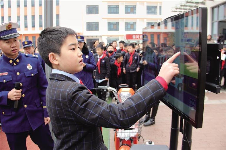 二月二十六日,在消防官兵指導(dǎo)下,銅川市朝陽(yáng)實(shí)驗(yàn)小學(xué)學(xué)生學(xué)習(xí)消防知識(shí)。 銅川市朝陽(yáng)實(shí)驗(yàn)小學(xué)供圖