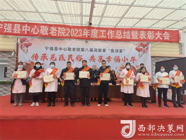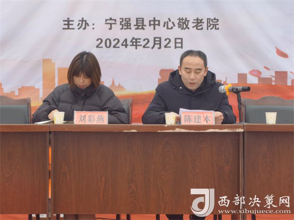 西部決策網訊  2月26日下午,寧強縣中心敬老院召開2023年度工作總結表彰大會暨2024年度第一次院民大會。會議由縣中心敬老院副院長劉興偉主持,全體工作人員及院民參加,并邀請縣民政局黨組成員、副局長陳建本參加列席指導。