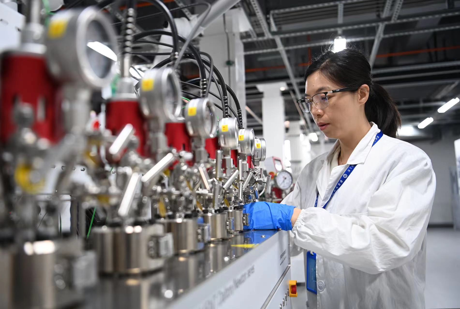 2月28日,在榆林中科潔凈能源創(chuàng)新研究院基于人工智能的高通量催化反應(yīng)研究平臺(tái)實(shí)驗(yàn)室,工藝專干黨小梅在進(jìn)行實(shí)驗(yàn)。新華社記者鄒競(jìng)一 攝