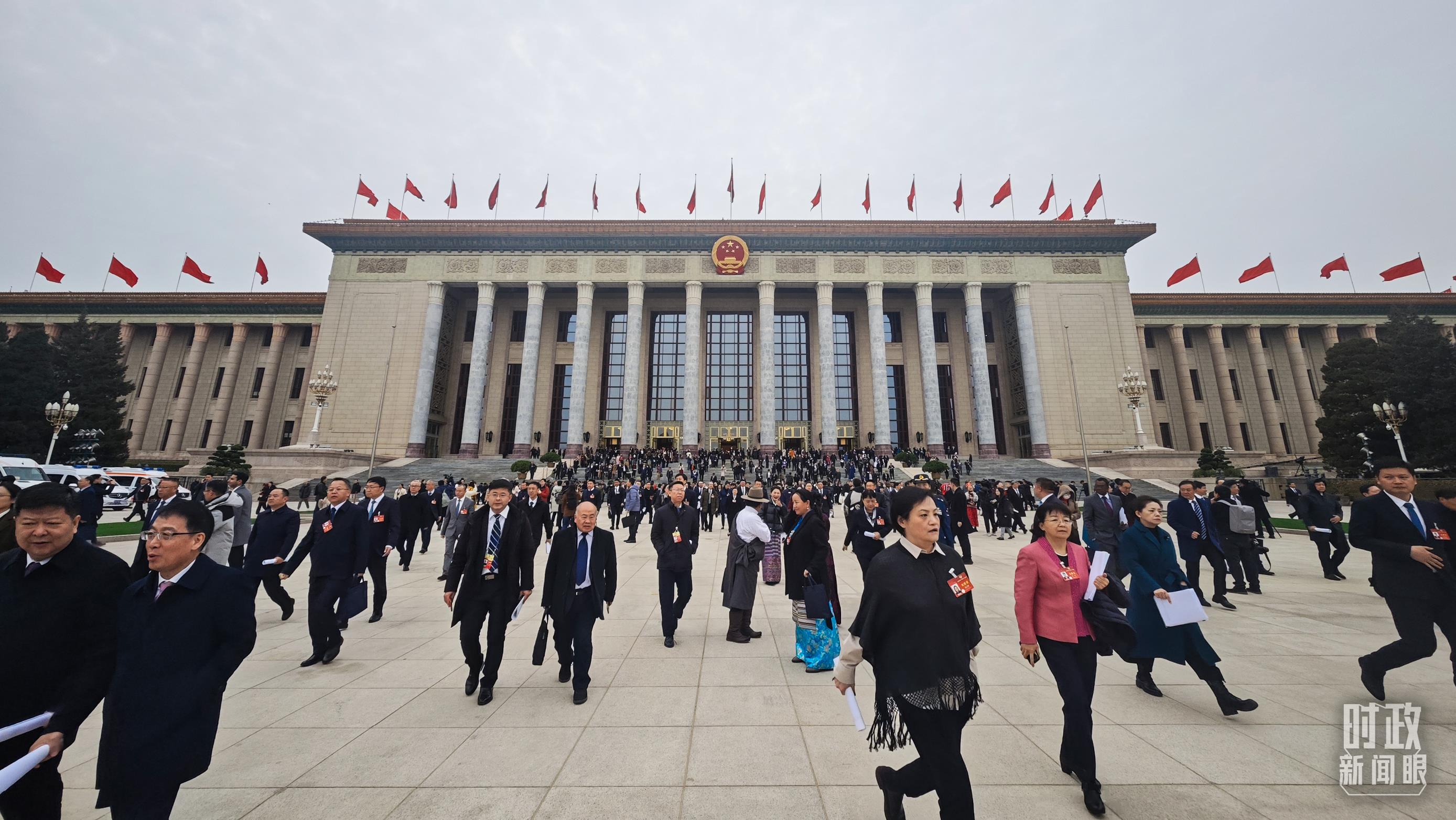 △3月4日,人民大會(huì)堂,政協(xié)委員們?cè)陂_幕會(huì)后離場(chǎng)。(總臺(tái)央視記者彭漢明拍攝)