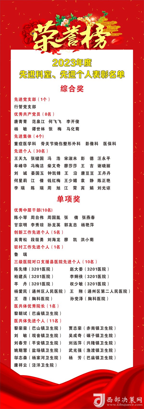 會(huì)議宣讀并表彰了2023年度醫(yī)院的先進(jìn)集體和先進(jìn)個(gè)人。