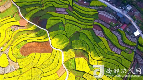 西部決策網(wǎng)訊 三月中旬,花紅柳綠,春雨綿綿。一腳踏進鎮(zhèn)巴簡池鎮(zhèn)李塘村,心都醉了。千畝田園油菜花進盛花期,站在高處遠望,金黃燦爛、層層疊疊的油菜花田依山傍水,清香撲鼻,美不勝收,與連綿的青山、清澈的河水、蜿蜒的公路、穿梭來往的游客、漂亮的民居、春耕的村民等交相輝映,構成一幅美麗的鄉(xiāng)村振興“調(diào)色板”和春日鄉(xiāng)村畫卷。