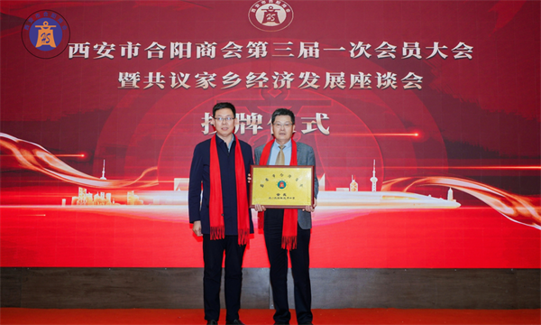 西安市合陽商會(huì)會(huì)長(zhǎng)賈申龍先生和監(jiān)事長(zhǎng)劉自力先生為副會(huì)長(zhǎng)單位授牌。
